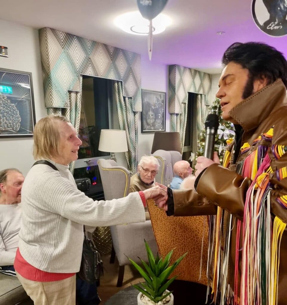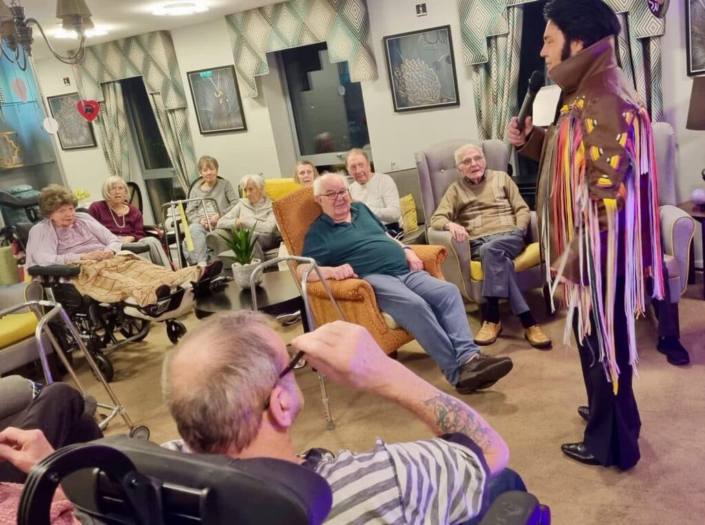 There was plenty of entertainment organised by the activities team for residents to enjoy in the comfort of our communal living area. We had a night of Rock and Roll with the King himself. The fantastic Elvis impersonator performed an array of Elvis classics and our residents couldn't help but sing along, some even got up and danced with Elvis; it was so lovely to see everyone's faces light up. We had the best of nights and enjoyed sharing this with our loved ones.
