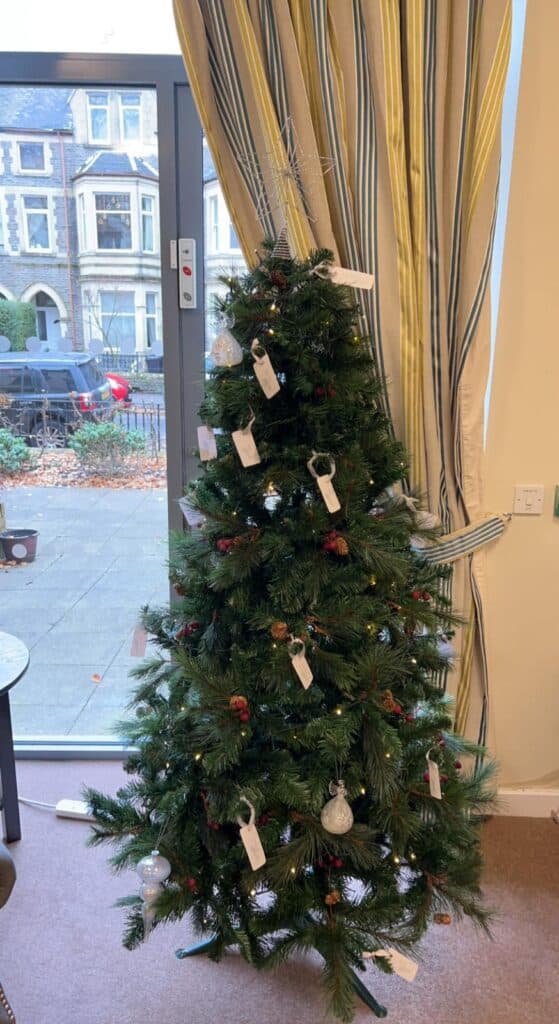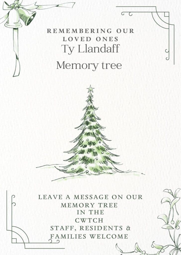 The staff at Ty Llandaff came up with the wonderful idea of converting one of the Christmas trees into a memory tree which was very fitting for the season of giving. Staff, residents, and loved ones reflected and shared their love, thoughts and memories on our memory tree in out Cwtch, a time to remember, laugh, cry and reminisce times gone by.
